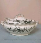 Antike Kiel & Co kleine Terrine, Deckel und Schöpfkelle, Arran Muster, grün & weiß