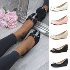 Neue flache Damenschuhe mit Schleife Ballerina Slipper Ballerinas Freizeit Arbeit UK
