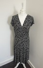 Schwarzes kurzärmliges Midi-Damenkleid mit Blumenmuster von Brora V-Ausschnitt Größe UK 12