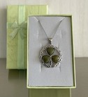 Connemara Marmor Kleeblatt keltisches Design Anhänger Halskette 925 Sterlingsilber 18"