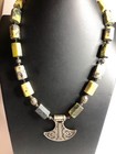B1468 Wikinger Mjolnir Anhänger Halskette Sterlingsilber Connemara Marmor 21" 131 g