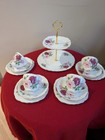Vintage Royal Vale Bone China rot rosa Rosen vier Teetassen Trios & Kuchenständer