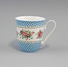 9952296-d Porzellan Becher Tasse Dekor Blüten blau kariert Jameson&Tailor 9x11cm