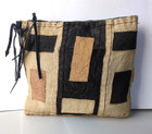 Raffia Tasche Beige Orange schwarz leder streifen am Reißverschluss 25x 23cm